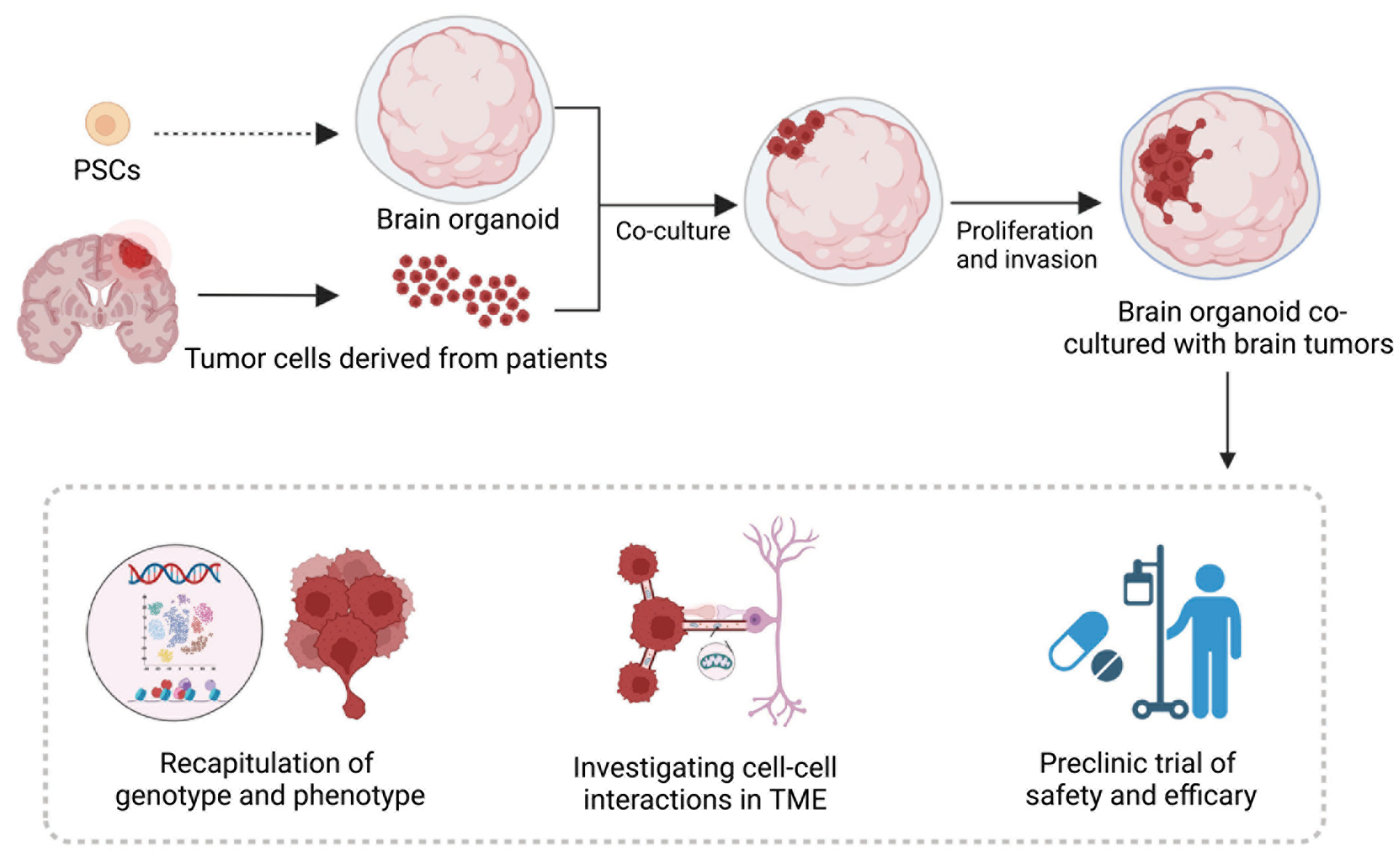 图9 与脑肿瘤共培养的大脑类器官的建立及其应用[33]