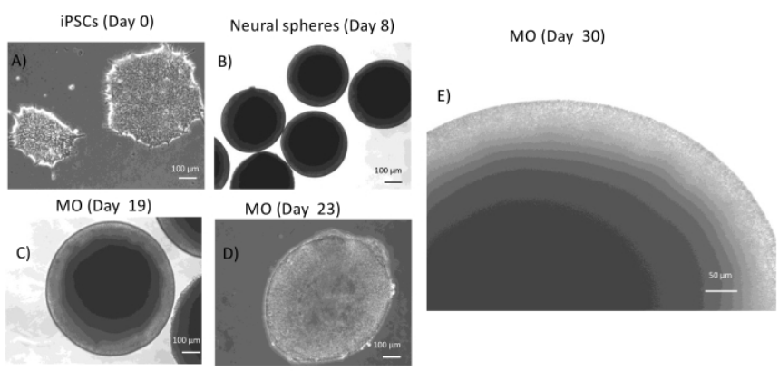 图6 iPSC分化流程图及iPSC衍生的MO在分化和表征过程中的代表性图[13]